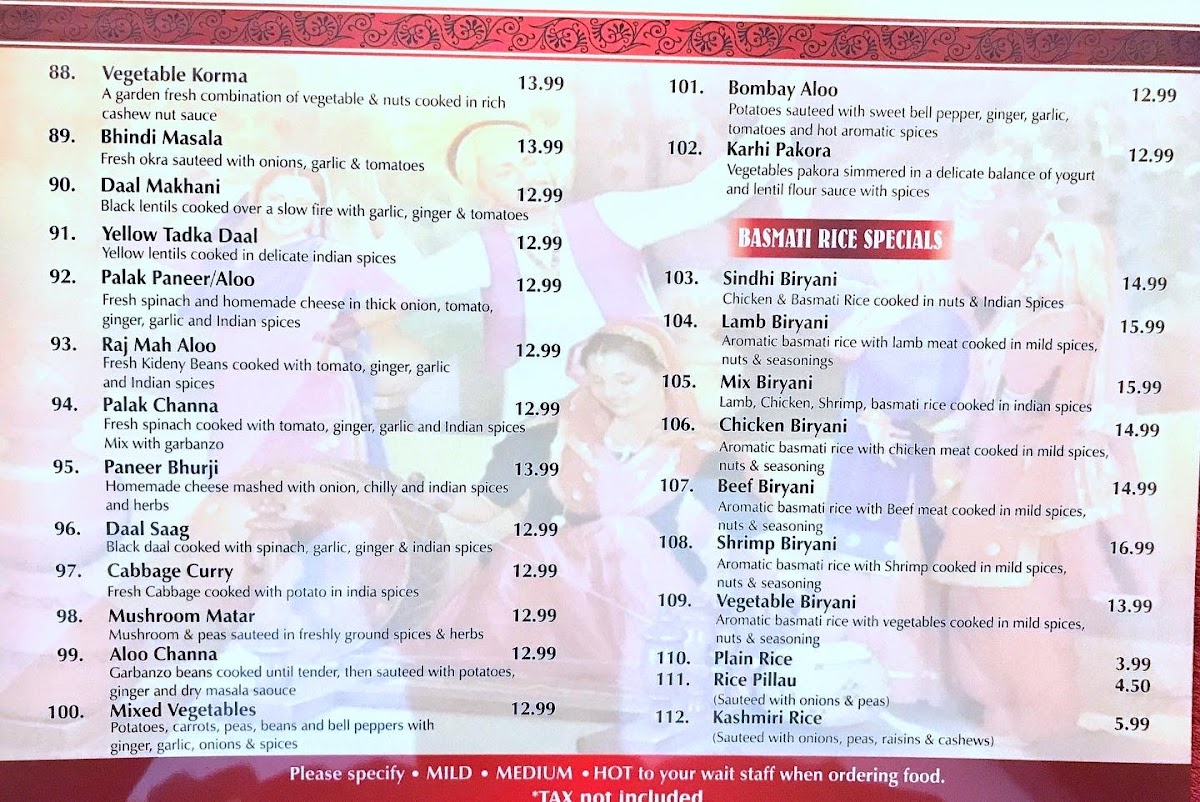 One vegetarian dish + one plain rice + one plain naan (drink is not included).